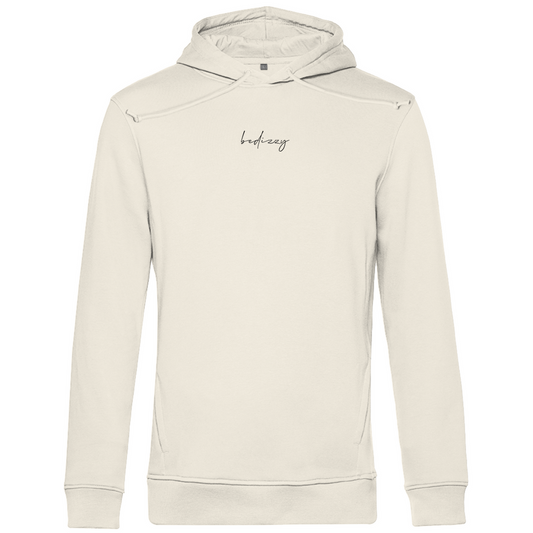This is a hoodie made from organic or converted organic cotton. The hoodie is modern, particularly soft and exceptionally easy to print on.